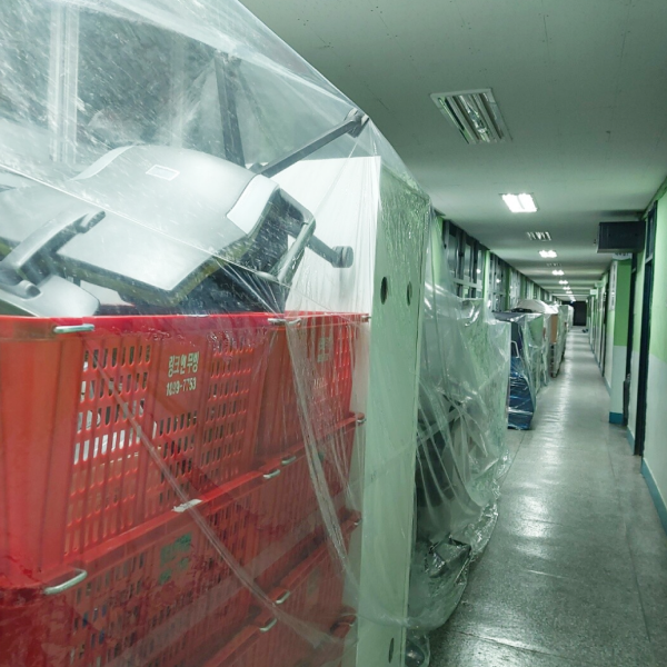 이전 물품들은 복도, 교실, 창고, 강당 등 교내 비어있거나 공사가 없는 공간을 활용해 보관합니다.